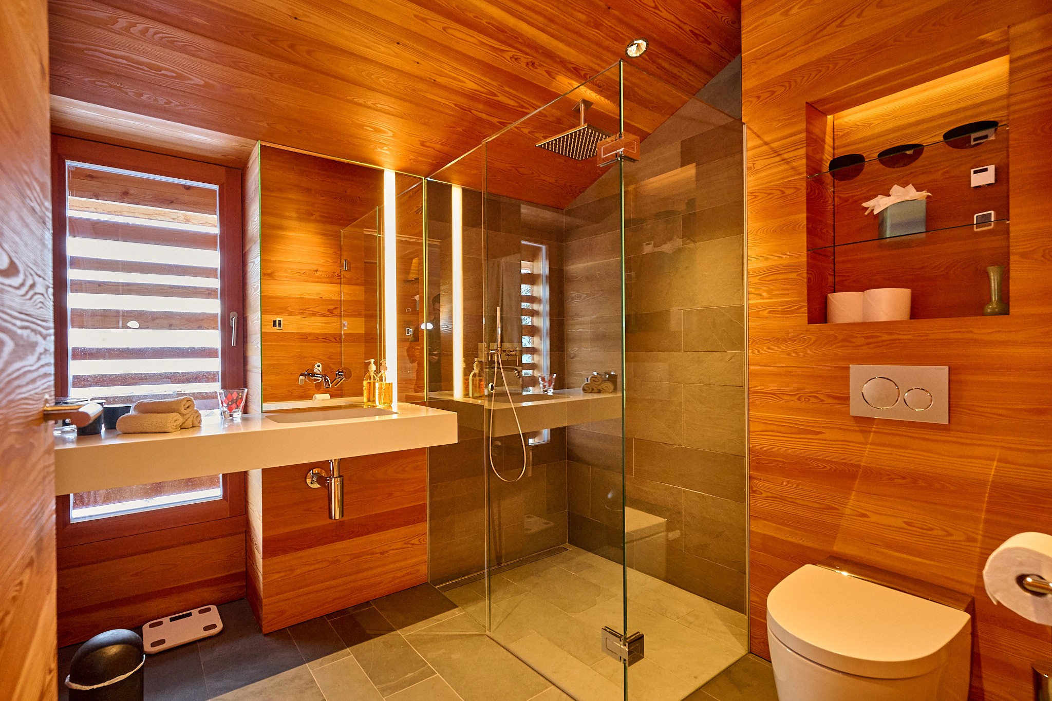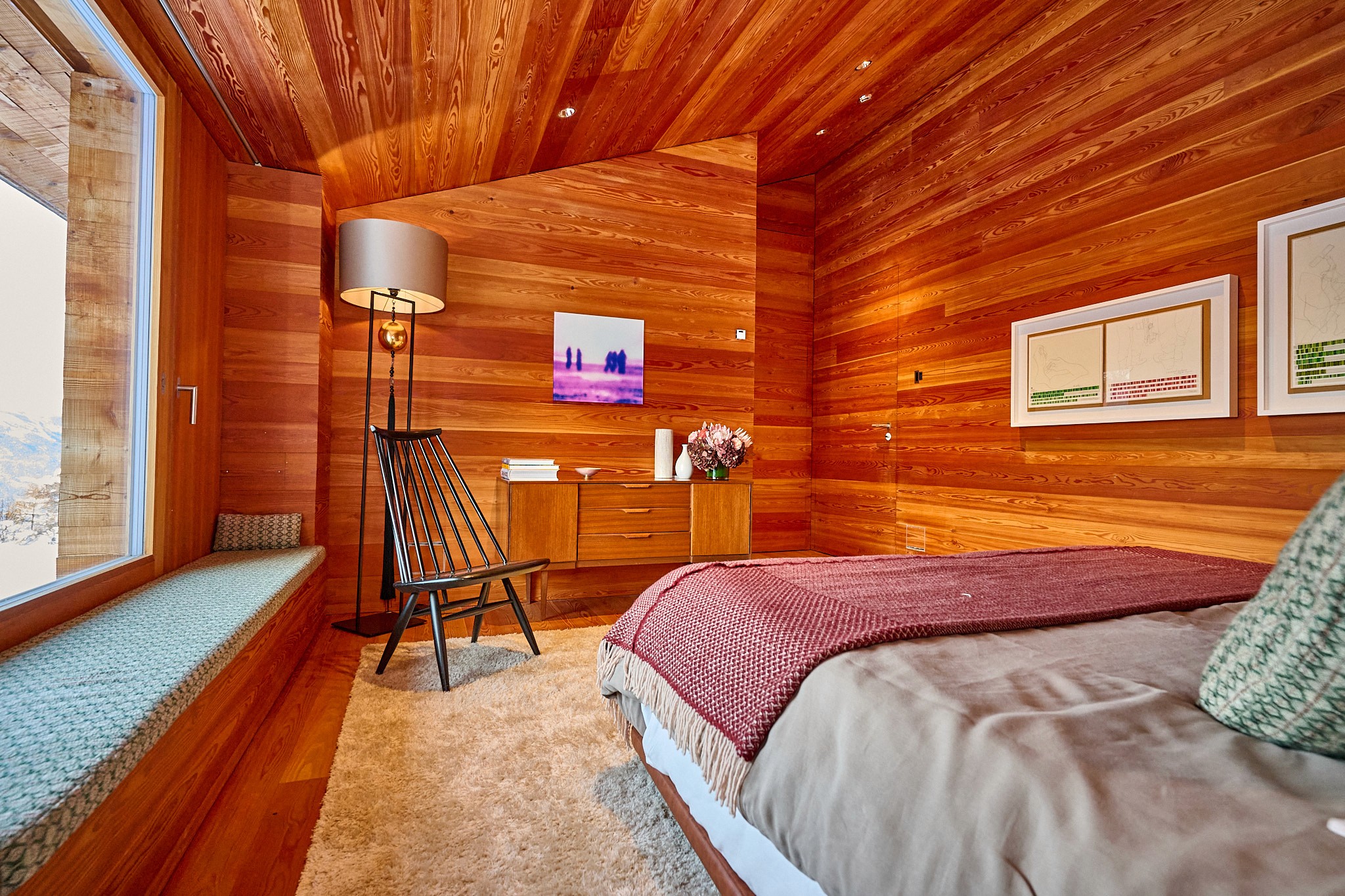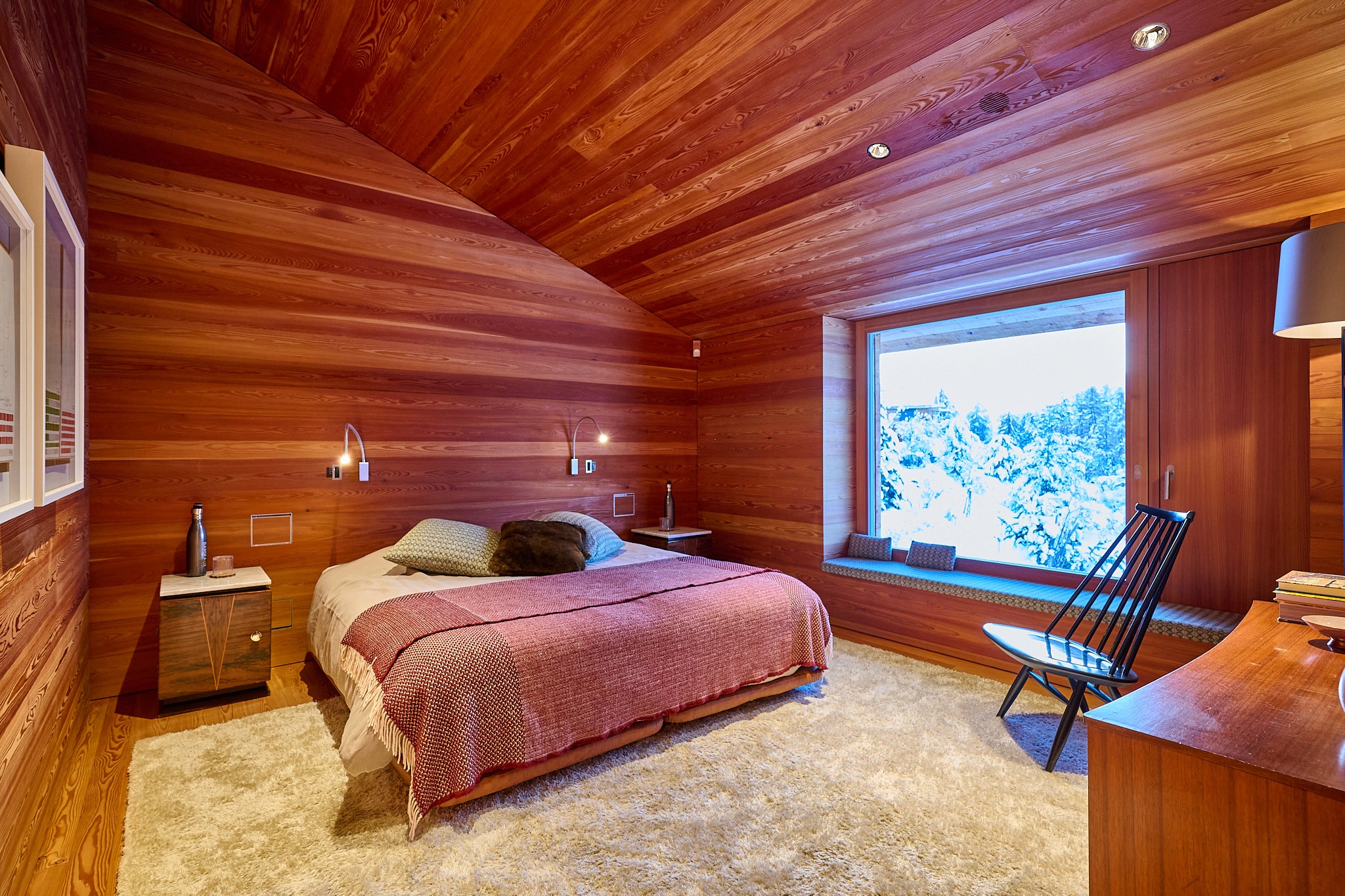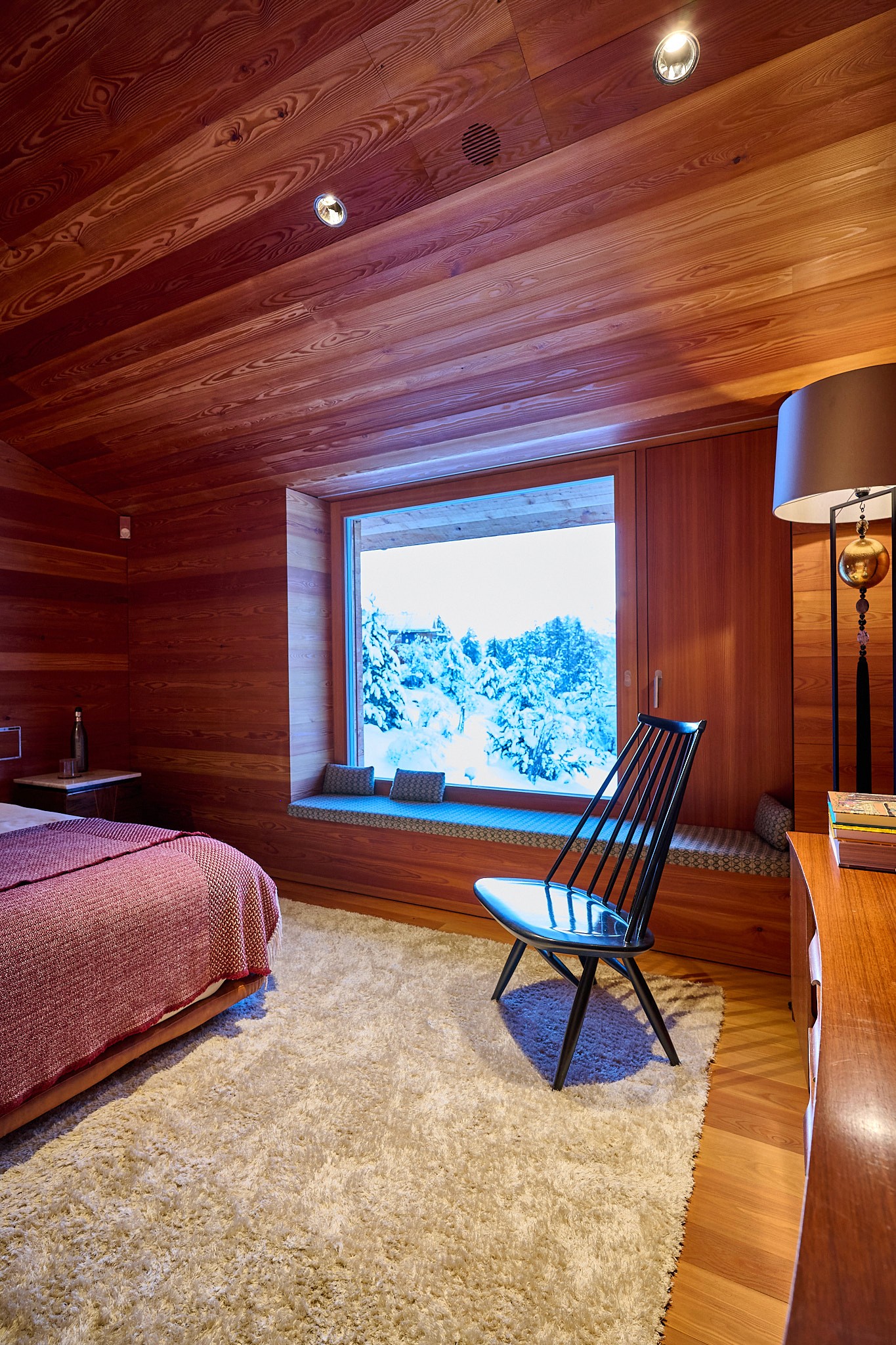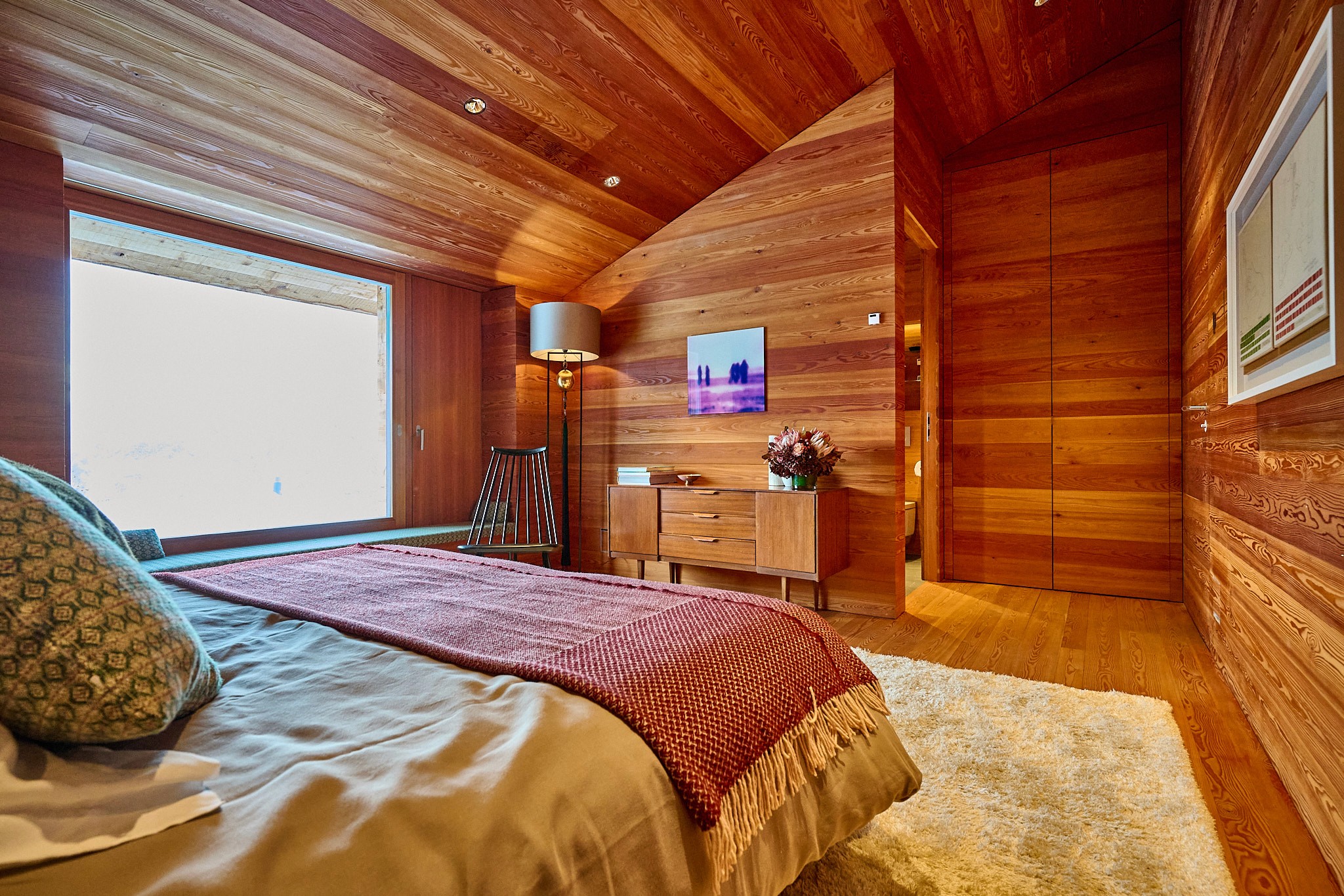 A bright Alpine room designed for quiet rest.