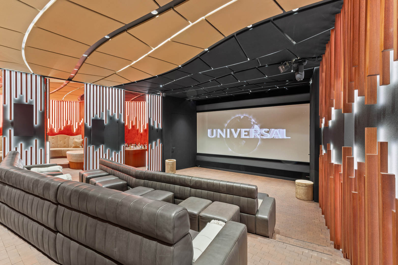 A versatile space that shifts from private screenings to late-evening gatherings with ease.